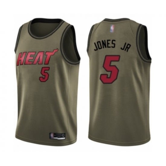 Youth Miami Heat #5 Derrick Jones Jr Swingman Green Salute to Service Basketball Jersey