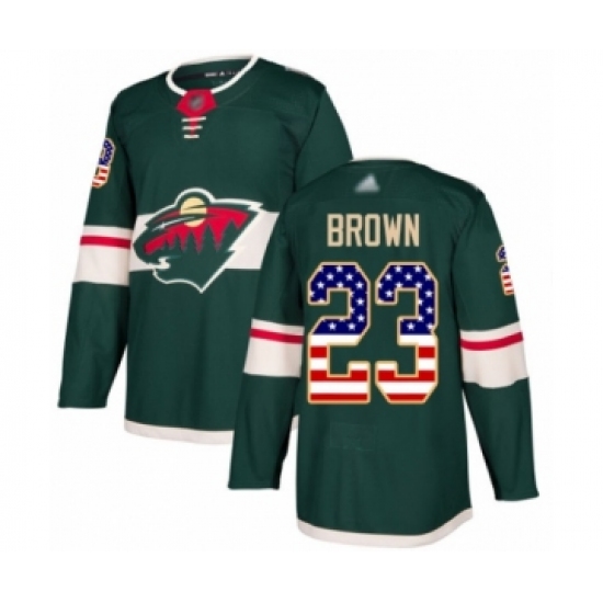 Youth Minnesota Wild #23 J.T. Brown Authentic Green USA Flag Fashion Hockey Jersey