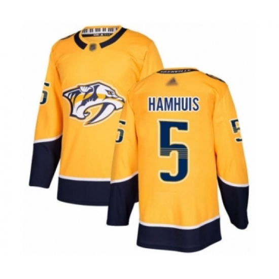 >Youth Nashville Predators #5 Dan Hamhuis Authentic Gold Home Hockey Jersey