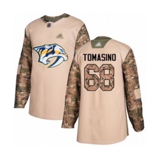 >Youth Nashville Predators #68 Philip Tomasino Authentic Camo Veterans Day Practice Hockey Jersey