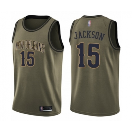 >Youth New Orleans Pelicans #15 Frank Jackson Swingman Green Salute to Service Basketball Jersey