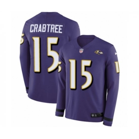 >Youth Nike Baltimore Ravens #15 Michael Crabtree Limited Purple Therma Long Sleeve NFL Jersey