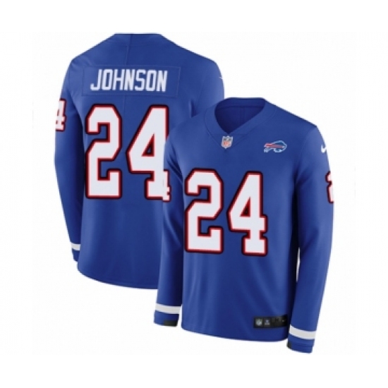 >Youth Nike Buffalo Bills #24 Taron Johnson Limited Royal Blue Therma Long Sleeve NFL Jersey