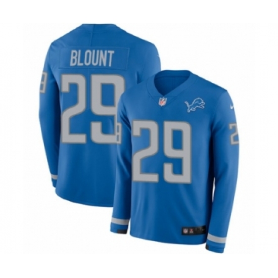 >Youth Nike Detroit Lions #29 LeGarrette Blount Limited Blue Therma Long Sleeve NFL Jersey