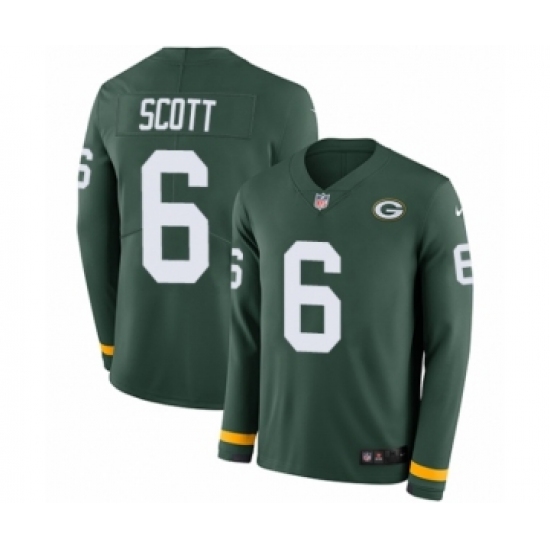 >Youth Nike Green Bay Packers #6 JK Scott Limited Green Therma Long Sleeve NFL Jersey