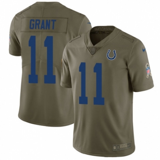 >Youth Nike Indianapolis Colts #11 Ryan Grant Limited Olive 2017 Salute to Service NFL Jersey