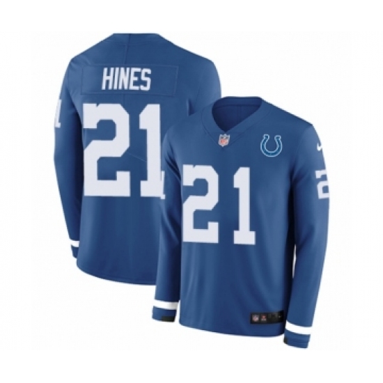 >Youth Nike Indianapolis Colts #21 Nyheim Hines Limited Blue Therma Long Sleeve NFL Jersey