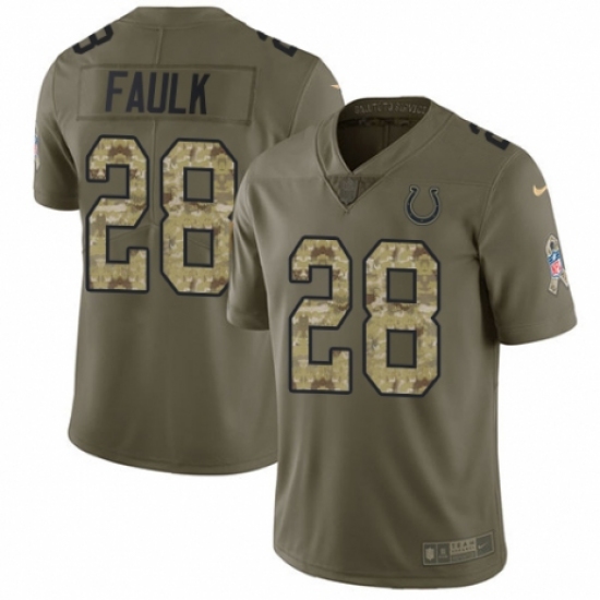 >Youth Nike Indianapolis Colts #28 Marshall Faulk Limited Olive/Camo 2017 Salute to Service NFL Jersey