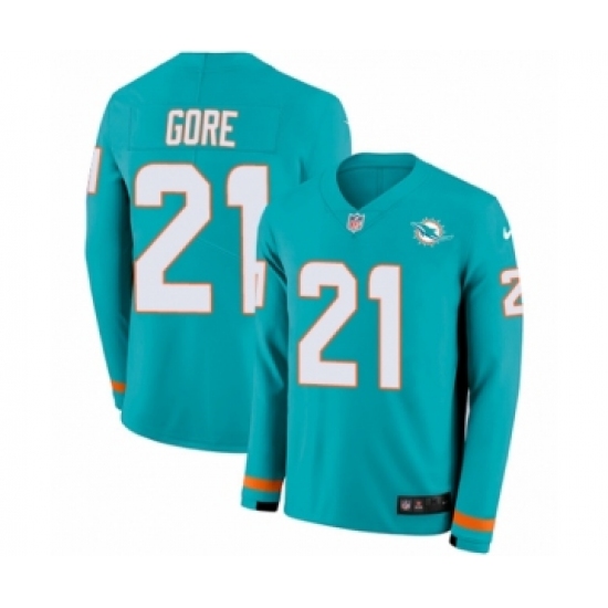 >Youth Nike Miami Dolphins #21 Frank Gore Limited Aqua Therma Long Sleeve NFL Jersey