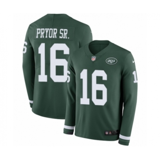 >Youth Nike New York Jets #16 Terrelle Pryor Sr. Limited Green Therma Long Sleeve NFL Jersey