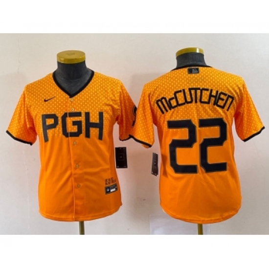Youth Nike Pittsburgh Pirates #22 Andrew McCutchen Yellow 2023 City Connect Stitched Jersey