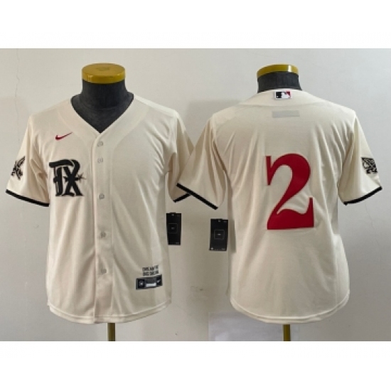 >Youth Nike Texas Rangers #2 Marcus Semien Cream 2023 City Connect Stitched Baseball Jersey