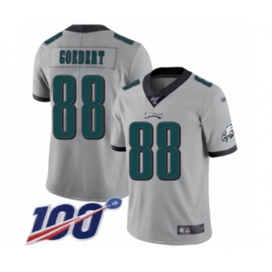 >Youth Philadelphia Eagles #88 Dallas Goedert Limited Silver Inverted Legend 100th Season Football Jersey