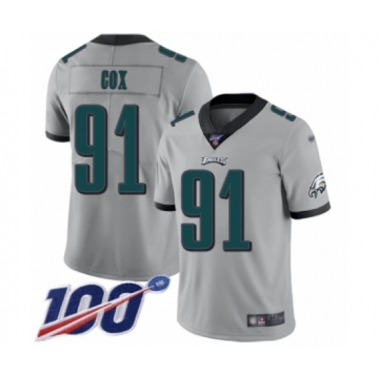 >Youth Philadelphia Eagles #91 Fletcher Cox Limited Silver Inverted Legend 100th Season Football Jersey