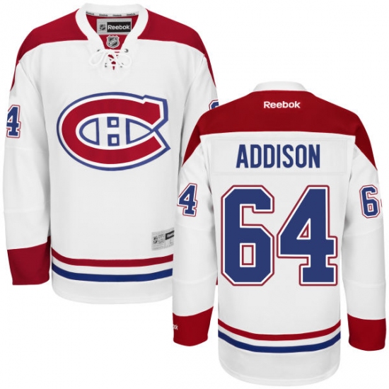 Home>NHL>Montreal Canadiens>Jeremiah Addison>Youth Reebok Montreal Canadiens #64 Jeremiah Addison Authentic White Away NHL Jersey