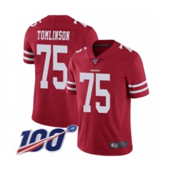 Youth San Francisco 49ers #75 Laken Tomlinson Red Team Color Vapor Untouchable Limited Player 100th Season Football Jersey