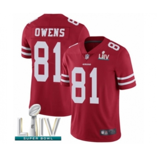 >Youth San Francisco 49ers #81 Terrell Owens Red Team Color Vapor Untouchable Limited Player Super Bowl LIV Bound Football Jersey