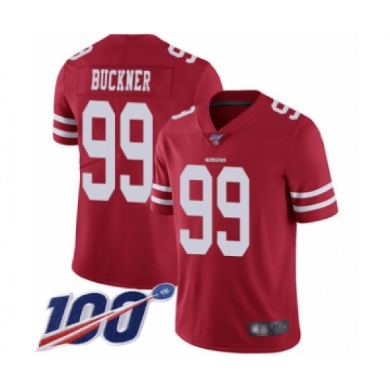 Men's San Francisco 49ers #99 DeForest Buckner Red Team Color Vapor Untouchable Limited Player 100th Season Football Jersey