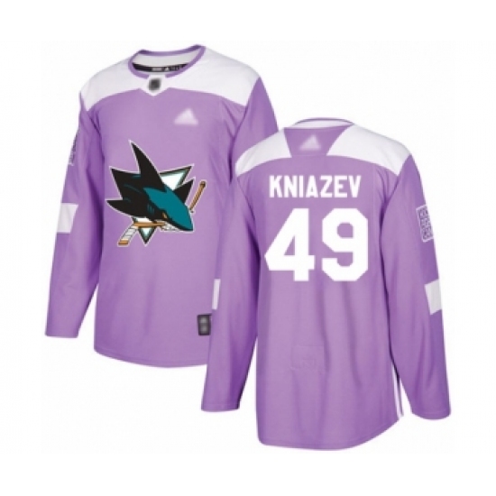 >Youth San Jose Sharks #49 Artemi Kniazev Authentic Purple Fights Cancer Practice Hockey Jersey
