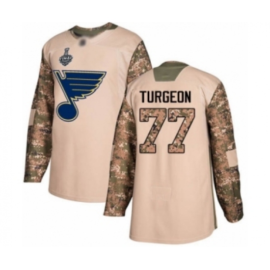 Youth St. Louis Blues #77 Pierre Turgeon Authentic Camo Veterans Day Practice 2019 Stanley Cup Final Bound Hockey Jersey