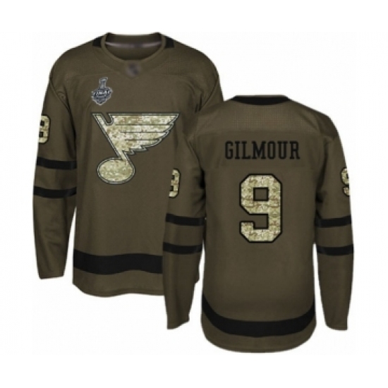 >Youth St. Louis Blues #9 Doug Gilmour Authentic Green Salute to Service 2019 Stanley Cup Final Bound Hockey Jersey
