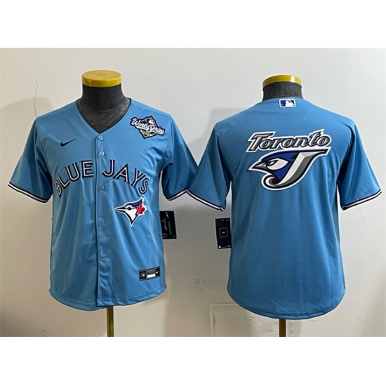 >Youth Toronto Blue Jays Team Big Logo Blue 2025 World Series Cool Base Stitched Baseball Jersey