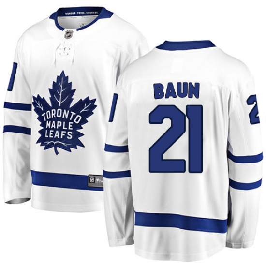 Home>NHL>Toronto Maple Leafs>Bobby Baun>Youth Toronto Maple Leafs #21 Bobby Baun Fanatics Branded White Away Breakaway NHL Jersey