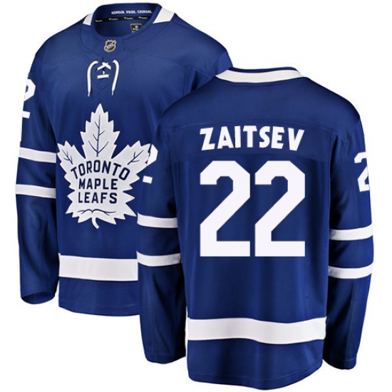 Home>NHL>Toronto Maple Leafs>Nikita Zaitsev>Youth Toronto Maple Leafs #22 Nikita Zaitsev Fanatics Branded Royal Blue Home Breakaway NHL Jersey
