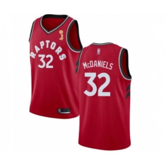 >Youth Toronto Raptors #32 KJ McDaniels Swingman Red 2019 Basketball Finals Champions Jersey - Icon Edition