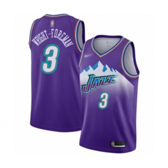 >Youth Utah Jazz #3 Justin Wright-Foreman Swingman Purple Hardwood Classics Basketball Jersey