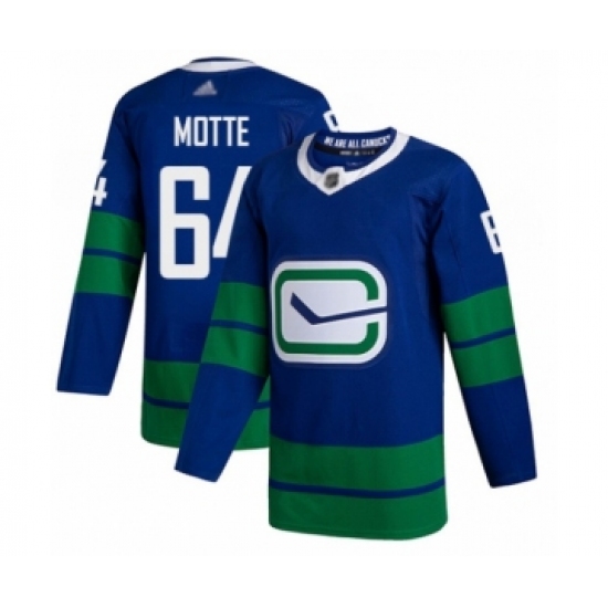 Men's Vancouver Canucks #64 Tyler Motte 2020-21 Authentic Player Alternate Stitched Hockey Jersey Blue