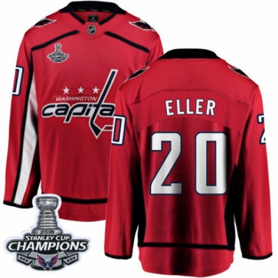 >Youth Washington Capitals #20 Lars Eller Fanatics Branded Red Home Breakaway 2018 Stanley Cup Final Champions NHL Jersey