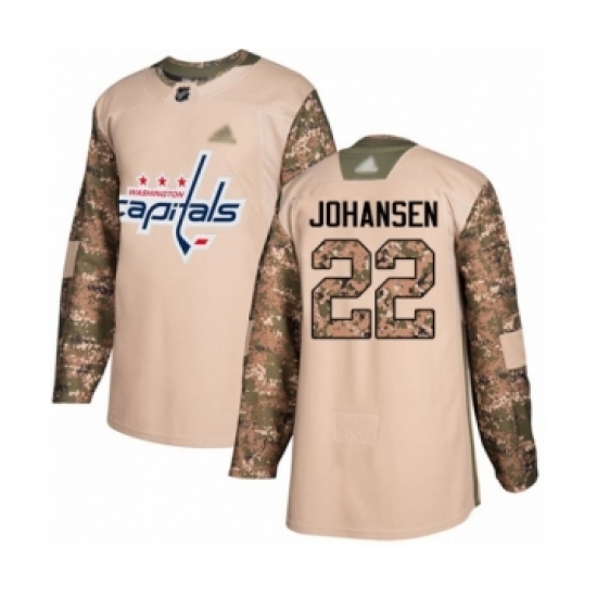 Men's Washington Capitals #22 Lucas Johansen Authentic Camo Veterans Day Practice Hockey Jersey