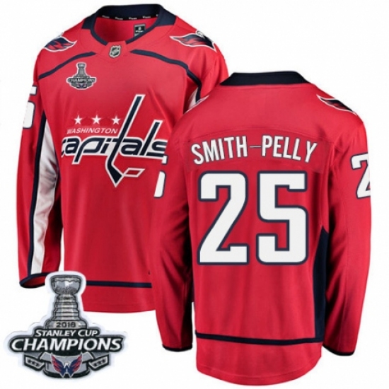 Men's Washington Capitals #25 Devante Smith-Pelly Fanatics Branded Red Home Breakaway 2018 Stanley Cup Final Champions NHL Jersey