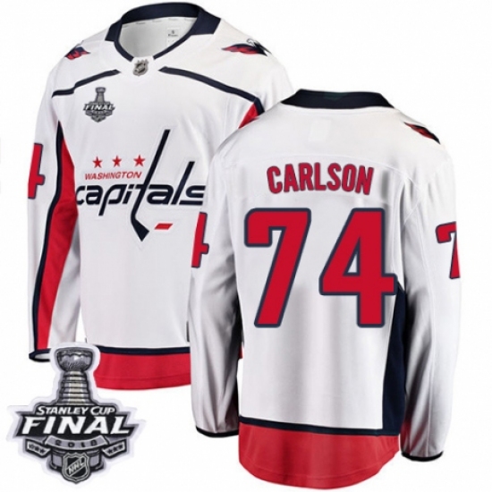 Youth Washington Capitals #74 John Carlson Fanatics Branded White Away Breakaway 2018 Stanley Cup Final NHL Jersey
