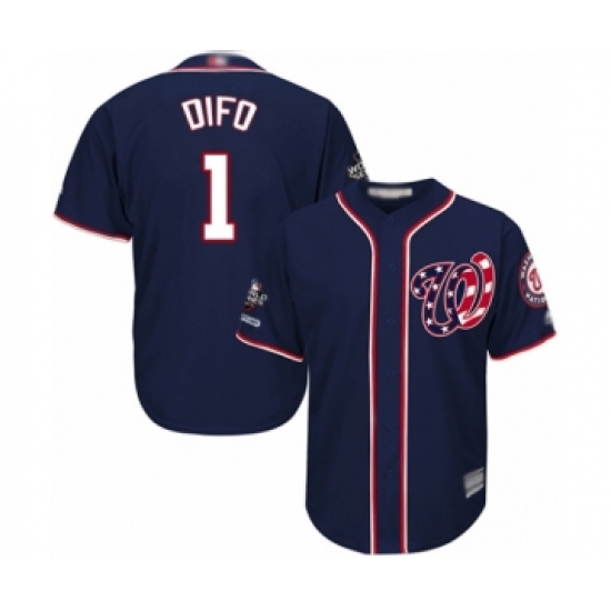>Youth Washington Nationals #1 Wilmer Difo Authentic Navy Blue Alternate 2 Cool Base 2019 World Series Champions Baseball Jersey