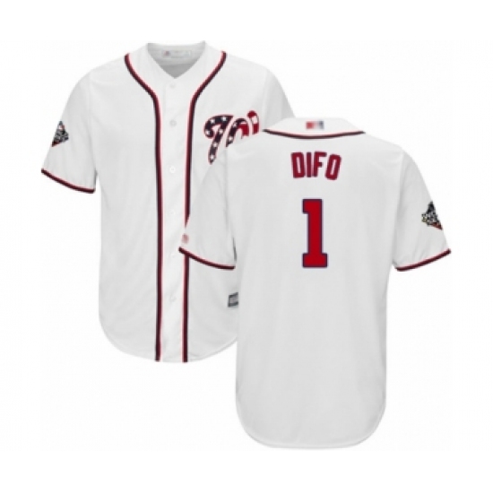 Youth Washington Nationals #1 Wilmer Difo Authentic White Home Cool Base 2019 World Series Bound Baseball Jersey