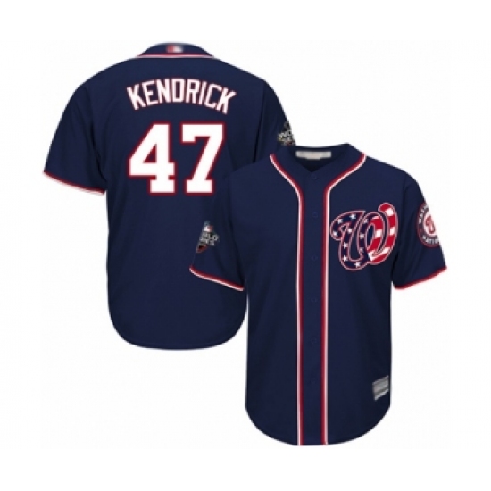 Youth Washington Nationals #47 Howie Kendrick Authentic Navy Blue Alternate 2 Cool Base 2019 World Series Bound Baseball Jersey