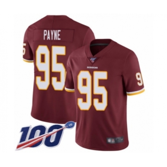 >Youth Washington Redskins #95 Da'Ron Payne Burgundy Red Team Color Vapor Untouchable Limited Player 100th Season Football Jersey