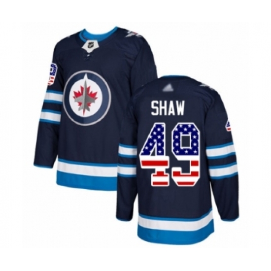 >Youth Winnipeg Jets #49 Logan Shaw Authentic Navy Blue USA Flag Fashion Hockey Jersey